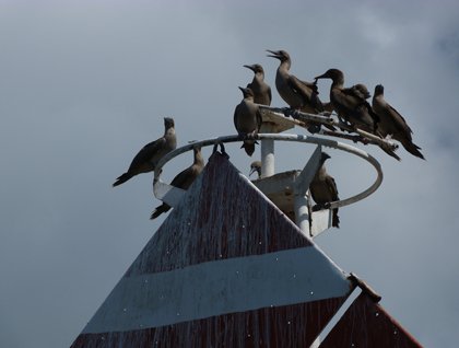 In the afternoon, we went for a Zodiac ride along the impressive cliff of Darwin Bay, which is full of nesting Nazca boobies, red billed tropic birds, fur sea lions basking on the rocks, storm petrels soaring away, and marine iguanas swimming in the water. Soon after, we disembarked on Prince Phillip’s Steps, another visitor site at the east side of the bay. There we enjoyed sea birds mating, hundreds of Nazca boobies nesting, little chicks being fed, and red-footed boobies building their nests. We the travelers felt like simply one more bird flock among the residents of this unique world. The incredible friendliness of the fauna of Galapagos has made a wonderful impression on us this week. It was an amazing expedition!