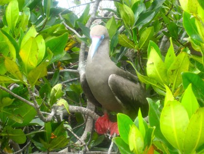Today we started our day in the northern hemisphere. After a long navigation we ended at a very special place in the archipelago, Genovesa Island, the “bird Island.” In the morning we visited Darwin’s Bay in the caldera of Genovesa. We landed for a hike on a white sandy beach formed by eroded pieces of broken coral. The landscape was incredible and the island had an explosion of wildlife: red footed boobies, Nazca Boobies, frigate birds, swallow tailed gulls, herons and finches were everywhere. Genovesa holds the larger density of birds per island in the Galapagos. It was a real privilege to visit this place surrounded by mangroves and spectacular cliffs made of basaltic lava rocks.