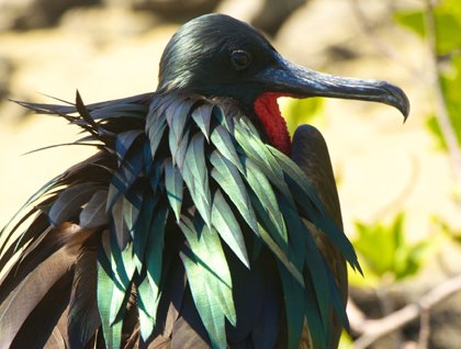 After a delicious buffet breakfast we landed on a lovely white sand beach and set off for a choice of two walk options: an easy one along the sandy beach margin of the shore or the beach margin plus an extension on very rough lava field to a lookout across the bay. These walk were amazing! There were seabirds nesting and resting everywhere—the elegant nocturnal swallow tailed gulls and Nazca boobies were on the ground, in the sand and between the lava rocks, the red-footed boobies and great frigatebirds had nests in the salt bushes and mangrove trees. Baby boobies at all stages of development were seen: fluffy white chicks, funny-looking young birds that were sprouting feathers between their down, and juvenile birds flapping and strengthening their wings as they prepare to take flight. Some frigates were already incubating eggs while other lone males spread their wings, fluttered and cooed, with their red pouches extended as they tried to attract a mate.