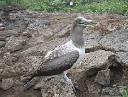 The morning was sunny with evidence of recent rainfall, and our adventure began with a walk that started at Prince Philip’s Steps, where we were surrounded by Nazca boobies, red-footed boobies and frigatebirds. All of the vegetation, such as palo santo and muyuyu trees, looked green and healthy, and along the trail we were able to spot frigatebird chicks and juveniles, eager to be fed by their parents. Along the rocky terrain we observed hundreds of lava tubes, and in the air, thousands of storm petrels fluttered along the seashore, alerting each other the presence of owls, the only camouflaged diurnal predator on the island. All of us felt rewarded as we observed several of them flying near us, including one of them which landed only a few feet from us, captivating the attention of our guests.
