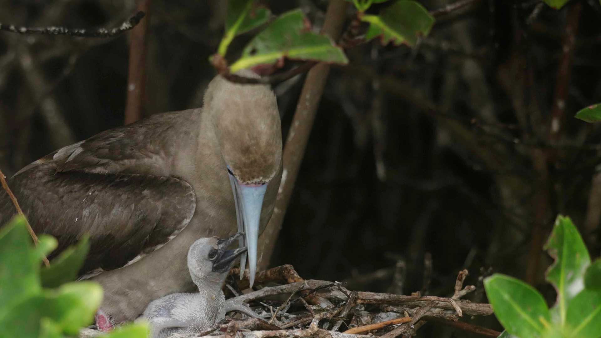 We crossed the Equatorial line last night, and today we woke up in the northern hemisphere inside the crater of Genovesa Island. These islands have birds flying above, nesting on cliffs, on the ground, and in the trees, diving in the water, mating, and dancing, there are birds everywhere you look!