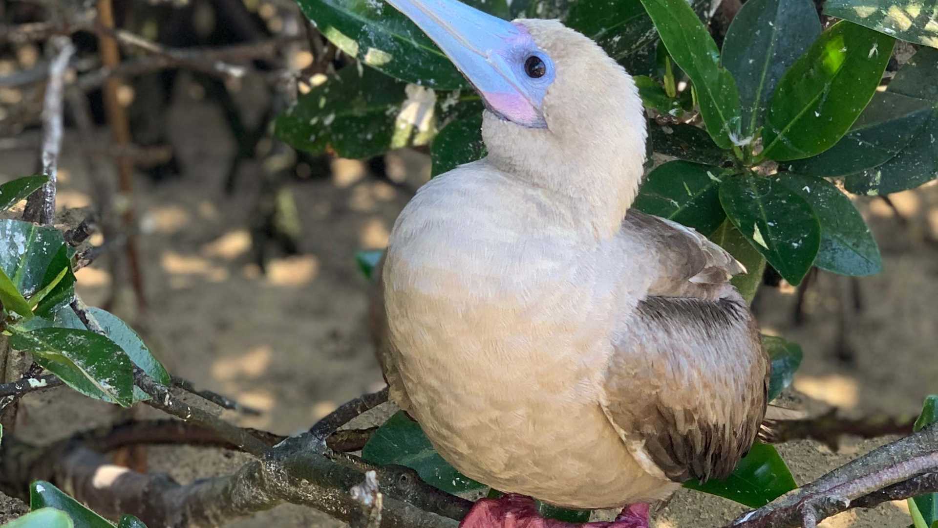 After breakfast the sun came out and we made a wet landing on a small coral beach and were immediately amazed by the number of seabirds nesting, roosting, and flying in this area; we observed some frigate birds and red-footed boobies were on their nests in the low shrubs. In the air, frigates and boobies soared on the constant breeze while on the beach sea lions lounged on the sand and in the waves. Walking along the trail we approached to the mangroves area, where fluffy chicks were the delightful of our guests while on the top of bushes some males frigatebirds with their unmistakable sounds, showed us their happiness after been accepted by a female. They proceed to embrace one another following a well elaborated ritual very common in sea birds around the world. After the beach, we came back onboard preparing for deep water snorkeling. It was sunny and the ocean warmer than on most days. Swimming along the cliffs we observed colorful fish and fur sea lions. Our guests recognized many of the more common species of fish, like the king angels, yellow-tailed razor fish, Moorish idols, large-banded blennies, rainbow wrasse, blue-chin parrot fish among others.