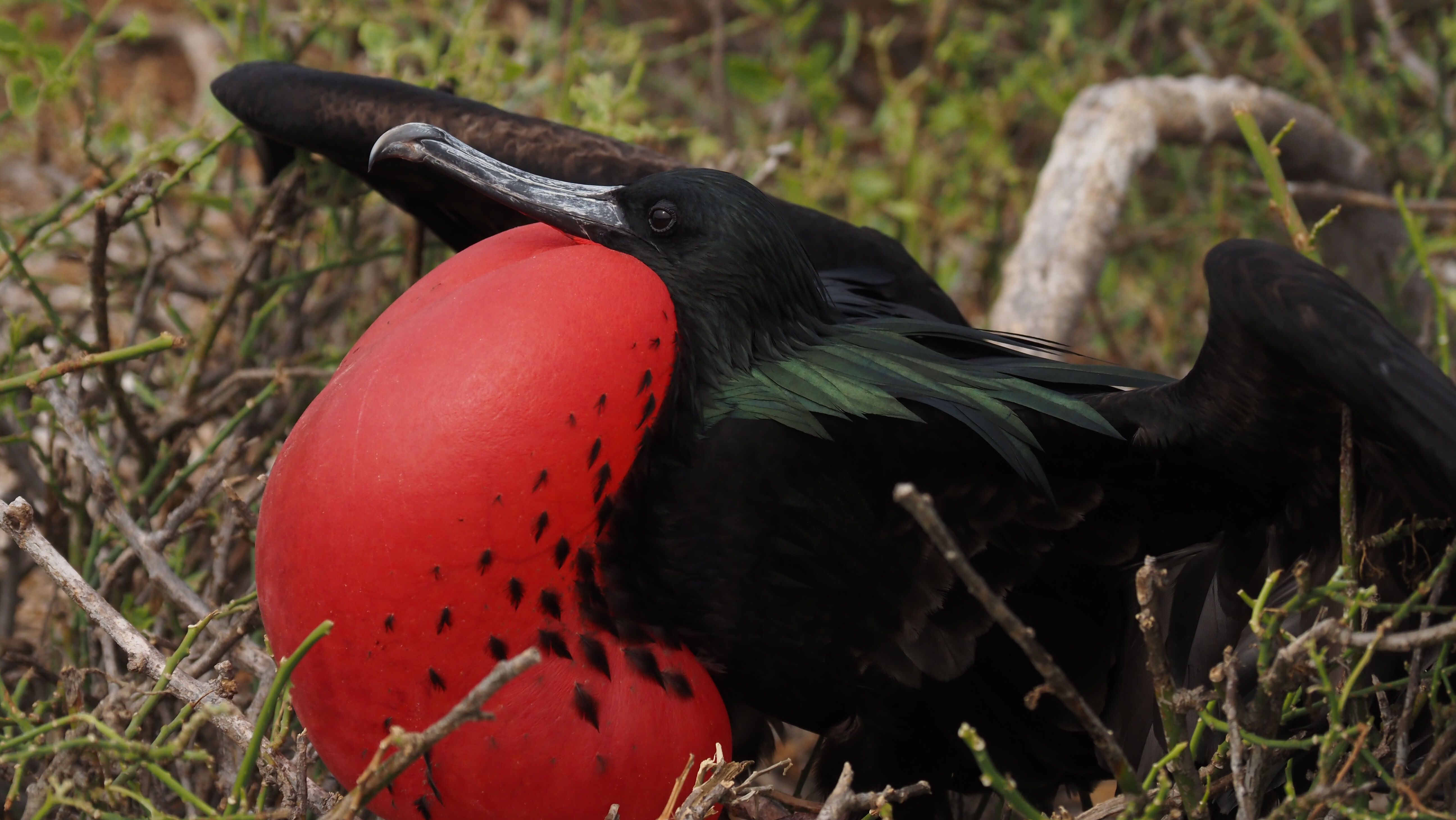 Our adventure began with a wet landing on a white coralline beach inside Darwin Bay. William Beebe, a celebrity visitor, named the bay in honor of Charles Darwin, a great naturalist who redirected human thought. As we walked over a platform at low tide, birds of all kinds and their chicks surrounded us. We observed their behavior and colors. We were moved by the sight of so many active seabird parents taking care of the juveniles, hoping they can one day fend for themselves. We also saw many male frigatebirds. Hoping to be selected by passing females, they displayed their gular pouches as part of a mating ritual. Here, each island has its own ecology and like in a Petri dish, the results vary. When we reached our turning point, the tide was going out quickly and steadily. This allowed us to continue our walk as we searched for shorebirds along the shoreline.