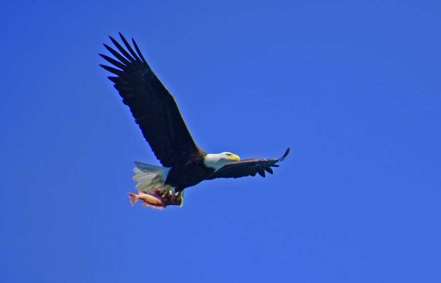 After a short cruise to the Inian Islands, we dropped anchor and headed out for an afternoon of exploration by expedition landing craft. Wow! It was a truly amazing experience. We came into an area of dramatic currents and upwellings where the marine buffet line was open for sea lions, bald eagles, gulls, and other seabirds on an incoming tide. We hardly knew where to look as eagles plummeted to the water to catch fish, and then were chased by their comrades, occasionally dropping their catch and squabbling over ownership. Steller sea lions hauled fish from the depths, beating them against the water’s surface to break them into bite-sized chunks. Gulls dove in with gusto to clean up the scraps. The wind was fierce, but the brilliant sun and grand vistas kept smiles on our faces.