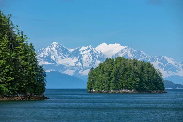 Those up before breakfast were treated to humpback blows in front of the still prominent Fairweather Range on the horizon. The clouds threatened to take the peaks out of view, but by the time we were all ashore, the clouds had lifted onto another bluebird day. This morning was spent exploring George Island, imagining ourselves as the military crew that were tasked with taking the 18 tonne World War II gun from our landing beach to the north end of the island, where it was positioned to protect Cross Sound and Icy Strait from attack. When the site was abandoned in 1944, the gun and several of the Quonset huts were left behind and can be seen in various states of disrepair. The gun remains now as the only intact WWII gun in Southeast Alaska.