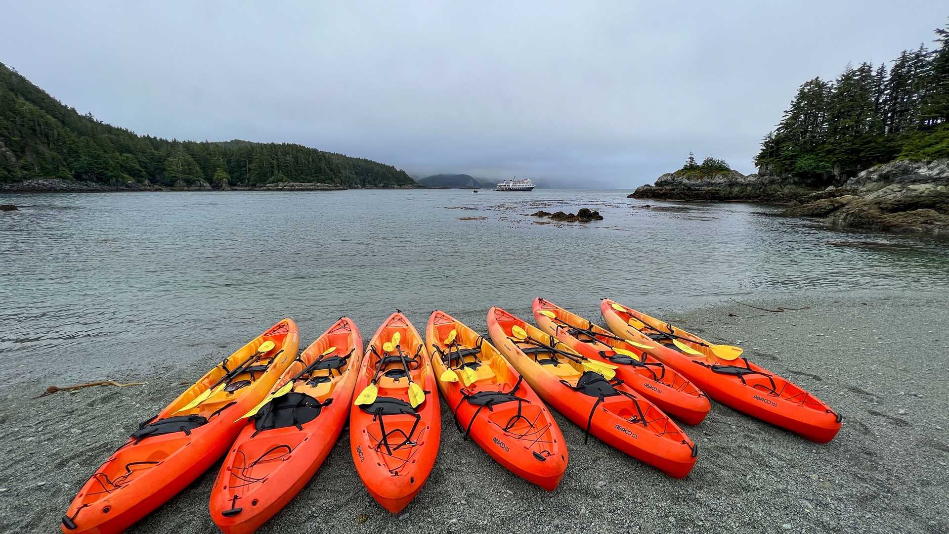 After traveling through the night, we awoke this morning in the secluded bay next to George Island. The day began with sightings of sea otters, bald eagles, and a variety of other birds. We made a shore landing in Zodiacs and split up into different adventure groups to enjoy the morning exploring George Island. We repositioned during lunch and then explored the Inian Islands in Zodiacs. We observed the bounty of wildlife drawn to this area to feed, thanks to the upwelling of nutrients caused by tidewaters rushing in between the islands from the Pacific Ocean.
