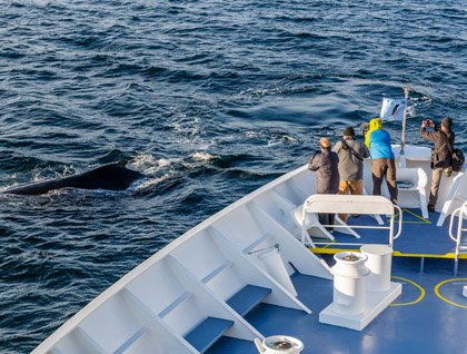 After a scrumptious Chinese dinner served to honor the start of the Chinese New Year, humpback whales were once again sighted off the bow of the ship and we stayed with them well into the twilight hours of late evening. Our day ended just as it had begun; in the company of humpback whales!