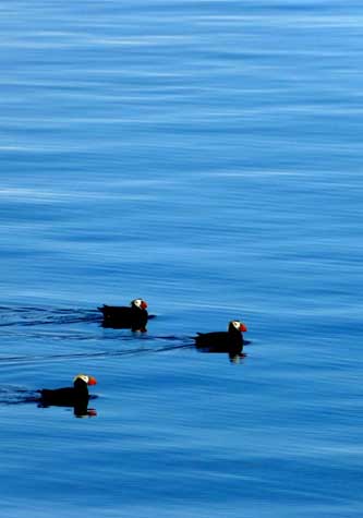 Following a brief introduction to the park, our guests gathered on the outer spaces of the ship with binoculars and cameras ready as we came upon South Marble Island. South Marble Island is a whirlwind of activity providing a protected location for many species of seabirds as well as a haul out for northern sea lions. The snorting snarls of the sea lions and the squawking of glaucous winged gulls provided the soundtrack for our trip by the island. In this relatively small space, bird lovers were welcomed by a variety of winged creatures including black oystercatchers, tufted puffins, black legged kittiwakes, and the common murre. And just in case not everyone was convinced of the variety of species that call Glacier Bay home, just on the other side of the ship, sea otters floated on their backs and a humpback gave us a show, slapping its large fin on the water in a gesture of greeting.