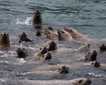 Our first wildlife sightings today were at South Marble Island, an important seabird nesting island. Kittiwakes perched on nests built on the rock cliff. Common murres, colored black and white like penguins, stood on narrow ledges on the cliff face. This is nesting season, so the small island is crowded with birds. Tufted puffins with bright orange bills bobbed on the water, and flapped their wings quickly when flying. Numerous Steller sea lions rested on the rock ledges, and a sea otter floated near the ship.