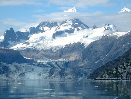 “Good Morning! Its 6:30 a.m. and 42 degrees outside. We are deep in the heart of Glacier Bay National at Margerie Glacier so come on out and enjoy the beautiful view.” So were the waking words of expedition leader Cindy Manning, or at least something close to that. Those who took her advice, and by 7:00 it seemed that all did, were well rewarded with an incredible vista before them. The magnificent Margerie did not disappoint. Towering before us at almost 100 meters high and a mile wide, she joined the Grand Pacific Glacier to make a rather awe inspiring and awesome panoramic vista.