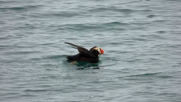 The islands came out of the fog just enough for us to see the abundance of bird life and Steller sea lions on South Marble Island. Back into the mystery we went. Luckily, Sarah Keefer gave us instructions on binocular use before we arrived at South Marble Island, so we were ready. We saw the top of Gloomy Knob and a few mountain goats, then back into the fog. Max Seigal provided helpful photography tips in his presentation on wildlife photography.