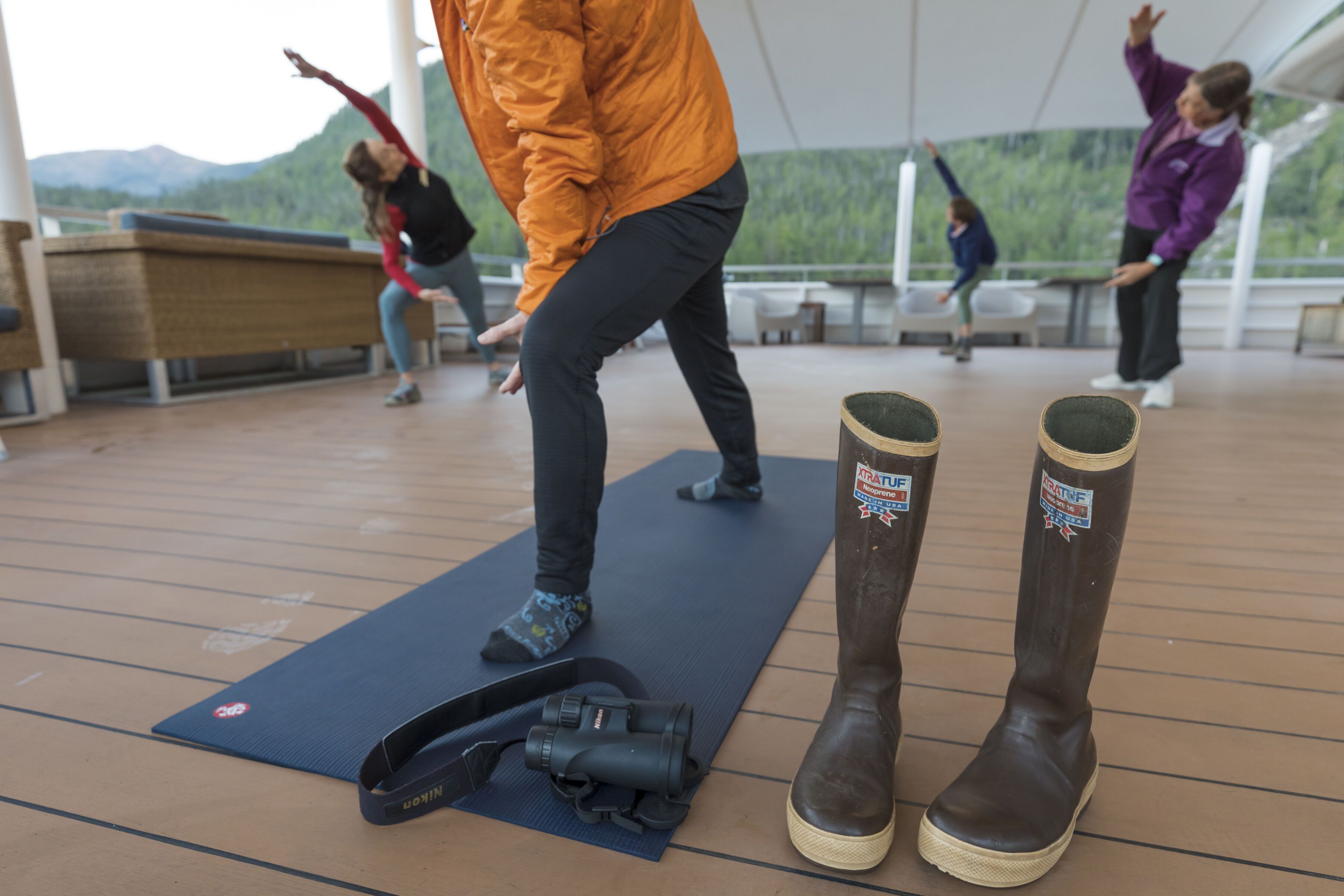 As National Geographic Sea Bird approached Margerie Glacier, signs of the changing season were abundant. An autumnal nip persisted in the air. The cottonwoods along shore donned their fall foliage, painting the valleys in a golden glow. Fireweed, too, displayed its cotton. Clouds hung low and skies were gray, but gray in Glacier Bay is not reserved for melancholy. Gray days are unparalleled in their tranquility, serenity, and opportunities for wildlife viewing.