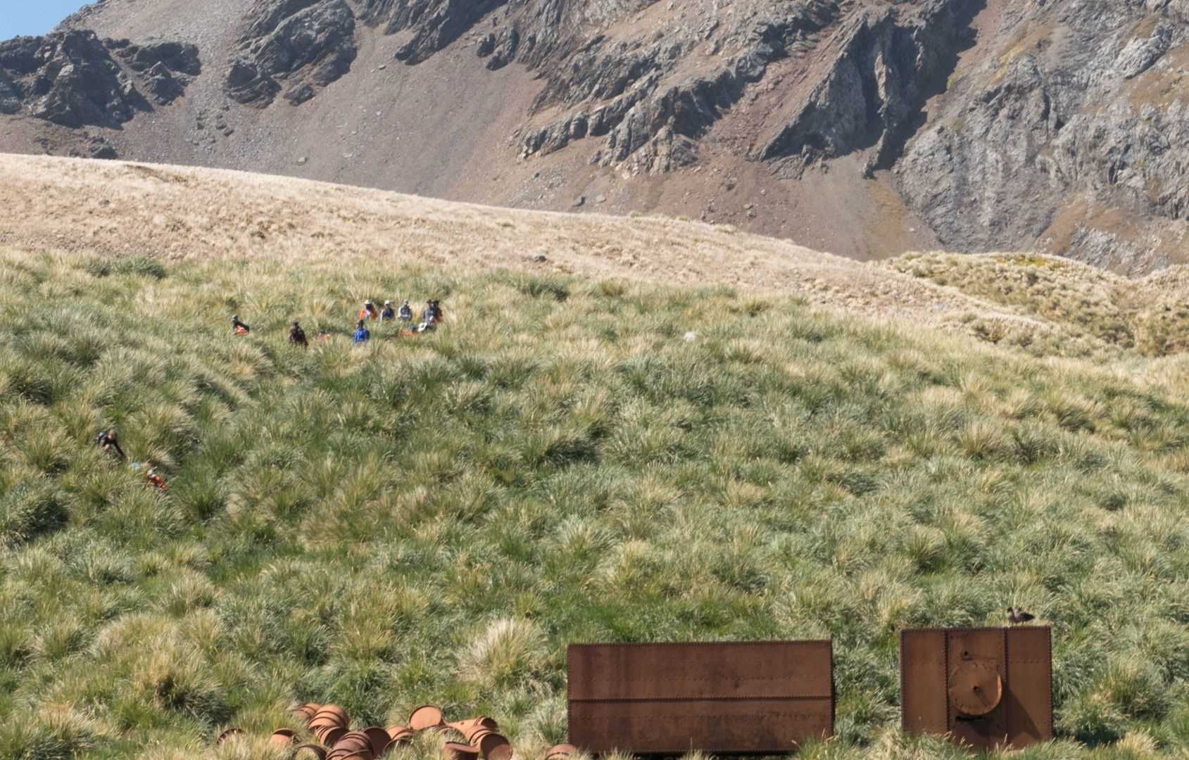 Our morning’s activities included a long hike from a rocky coastline dotted every 8 or 9 feet by a male fur seal. The hikers carefully picked their way steeply up the tussock slope to a plateau where they split into groups exploring the birdlife and vegetation around Lake Aviemore and on the rolling hills beyond. The rest of us enjoyed the cove by Zodiac cruise, soaking up the sun’s rays while admiring the fur and elephant seals on the shore, nesting South Georgia shags, stunning cliff faces covered with mosses and lichens and even a brief encounter with a curious leopard seal at the end of round one!