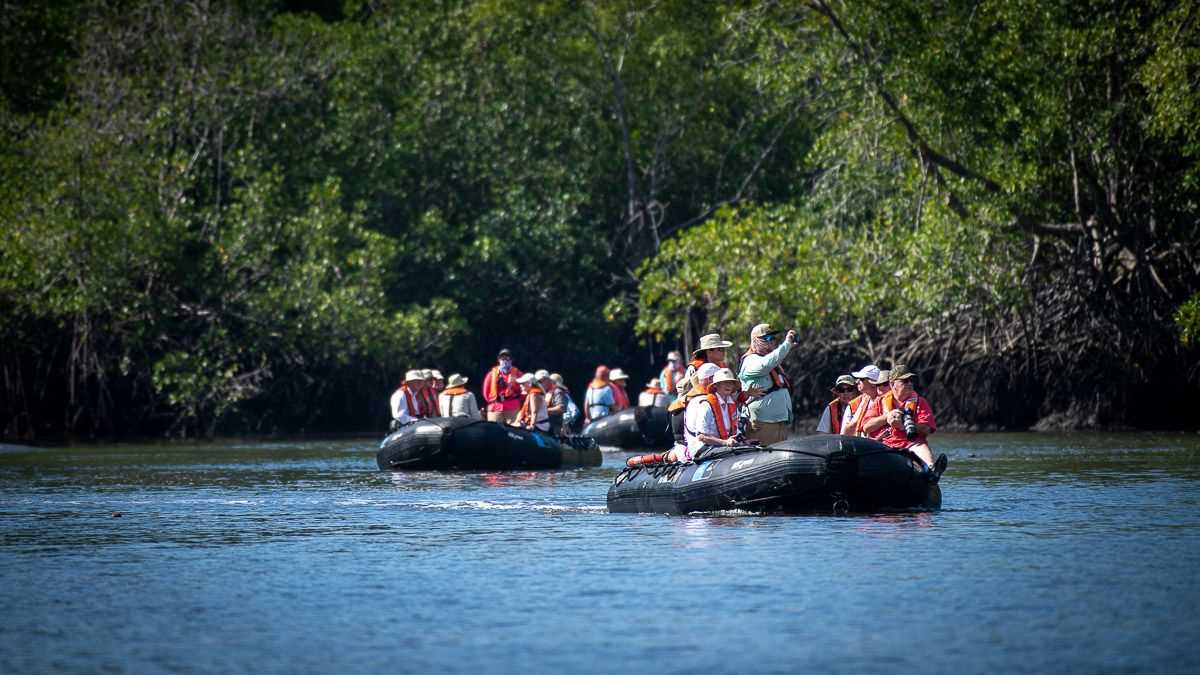 Today we entered the second country of our journey, Costa Rica. We came into the Southernmost Gulf called Golfo Dulce – the Sweet Gulf – and into amazingly green and lush tropical rainforest covered mountains. Even deep into the dry season, this area offers green dense vegetation to meditate. Early this morning we had Golfito Port authorities check us into the country, and we began with our activities. First, in hand the kayaking or Zodiac ride amongst the Golfito estuary and in the afternoon onto the beautiful Casa Orquidea Botanical Garden.