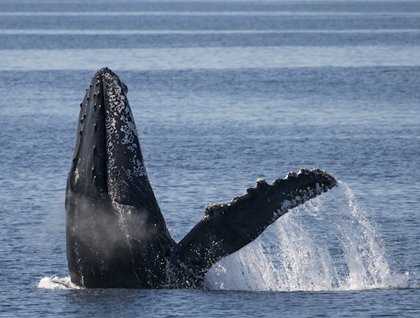 Humpback whales are the most acrobatic of the great whales, and some of them put on a great show, rolling to slap their enormously long pectoral fins on the water, and leaping from the water in a full-body breach, followed by the mighty splash of a 40-ton whale. What is the meaning of such behavior? Does it, somehow, relate to our presence? Do they do it to impress other whales? We can only speculate, and so we did.