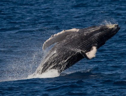 We had a wonderful morning of whale watching. Competitive groups of males would aggressively break the water’s surface, as each one of the individuals fought to transmit its genes to the following generation. We also saw some mothers with their calves. There was a good amount of acrobatic behavior that ranged from fin slapping, tail lobbing, and breaches. On a few occasions one of the calves breached in a spectacular way quite close to our ship.
