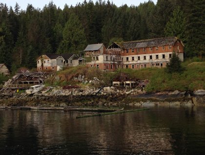 As we make our way north, we keep experiencing wonderful landscapes of British Columbia. Today we woke up in the vicinity of Princess Royal Island. Our morning was a calm one, with wonderful weather, perfect for spending time out on the bow. We entered a protected bay, where the old Butedale Cannery is located. The morning light was ideal for photography, or to simply contemplate the ruins of the old buildings, which blend beautifully with the forest.