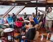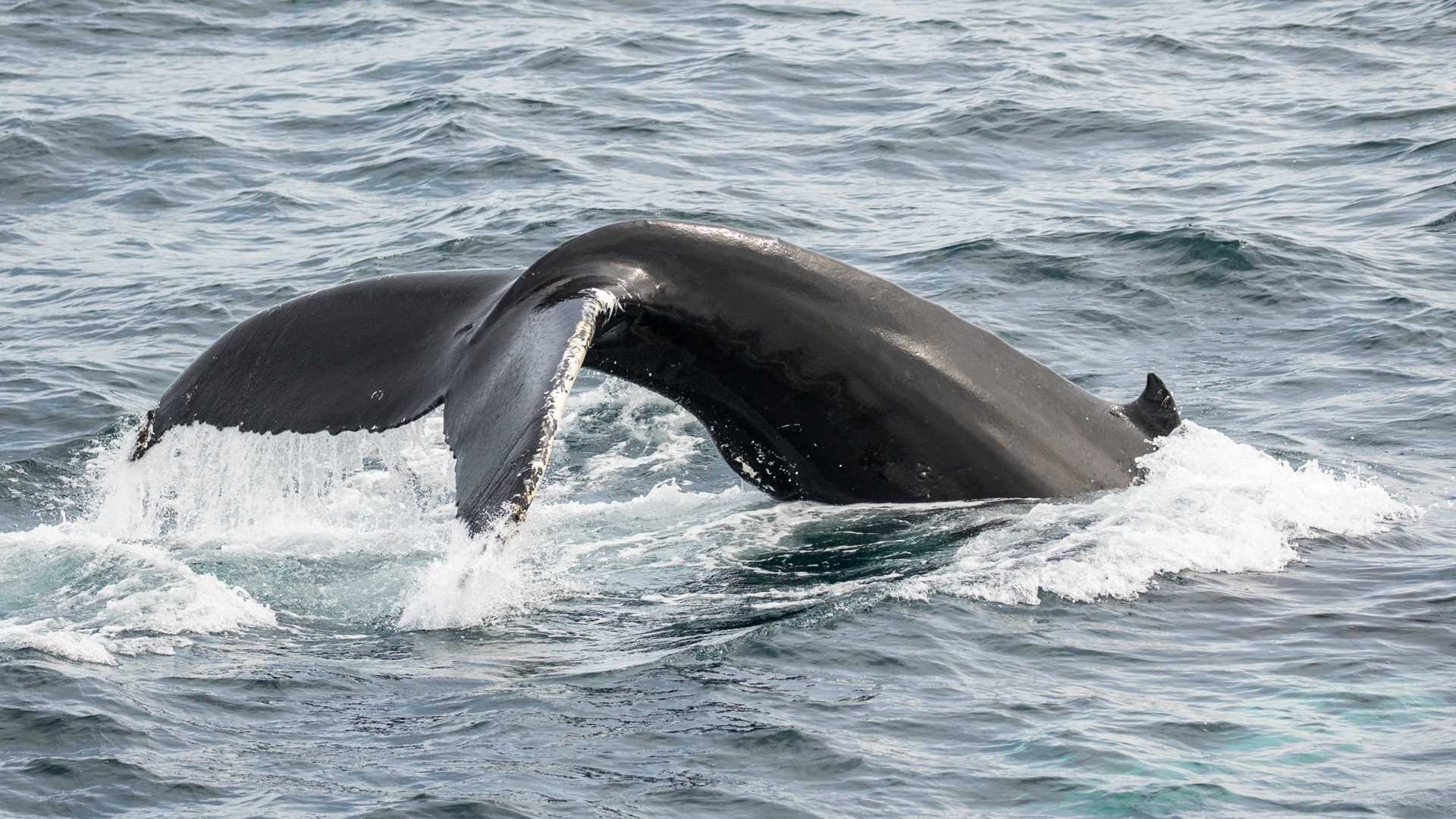 Just as we were about to head to lunch we were called to the bridge as some whales had been seen around the ship. Most of the guests and expedition team ran upstairs to aid in the search for the giants of the sea. Some flukes were observed and the National Geographic Orion got closer and closer to the animals. Several humpback whales were feeding just in front of the ship, much to the delight of our guests (and expedition team!). At various moments the humpback whales were witnessed bubble feeding just under the bow! It was the perfect birthday present for our Iceland cultural specialist Dagny Ivarsdottir.