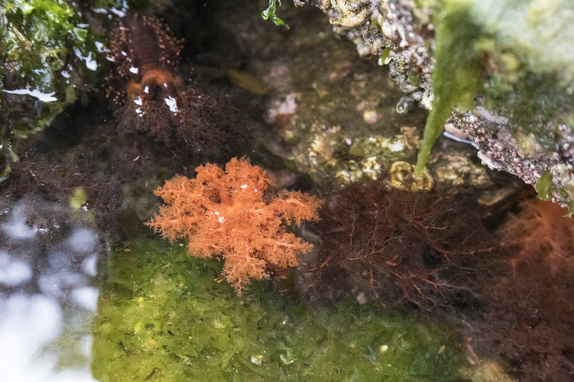 In the morning we divided up to explore Grindall Island. The long hikers went up to a beautiful lake and “bushwhacked” well beyond it. The photo hikers barely made it past the beach. The intertidal zone was spectacularly diverse and made for fantastic tide-pooling. We then circumnavigated the island on Zodiacs where we saw bald eagles, an abundance of ochre stars, sea urchins, and lots and lots of sea lions. After lunch we went on a tour and tasting of Hump Island Oyster Farm. We learned about the process and challenges of running an oyster farm and sampled the products. The Global Explorers learned how to use the ROV, or Remotely Operated Vehicle, under the docks of the oyster farm.