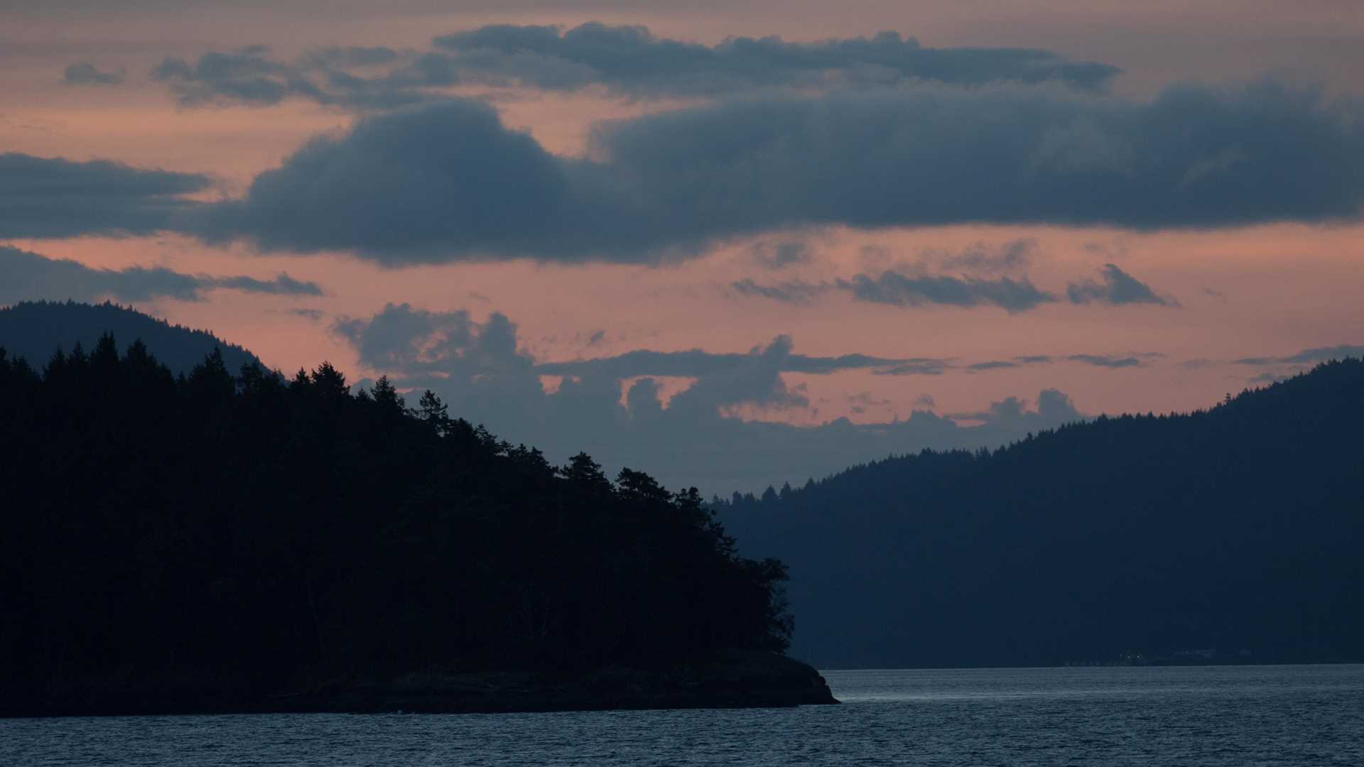 Before dawn’s early light the anchor was slowly lifted from off Wallace Island in the Gulf Islands of British Columbia, Canada. We traveled slowly to the southeast and the brightening sky of sunrise. Our plan was to search the channels and along the shorelines, not the many islands, trying to find the local killer whales that travel through the area. BC Ferries were actively moving, taking cars, other vehicles, and walk-ons to various towns and villages. This was normal for early morning commuters going to work, or maybe just visiting on a different island. Overhead, numerous seaplanes also carried people from more distant locations at a faster pace.