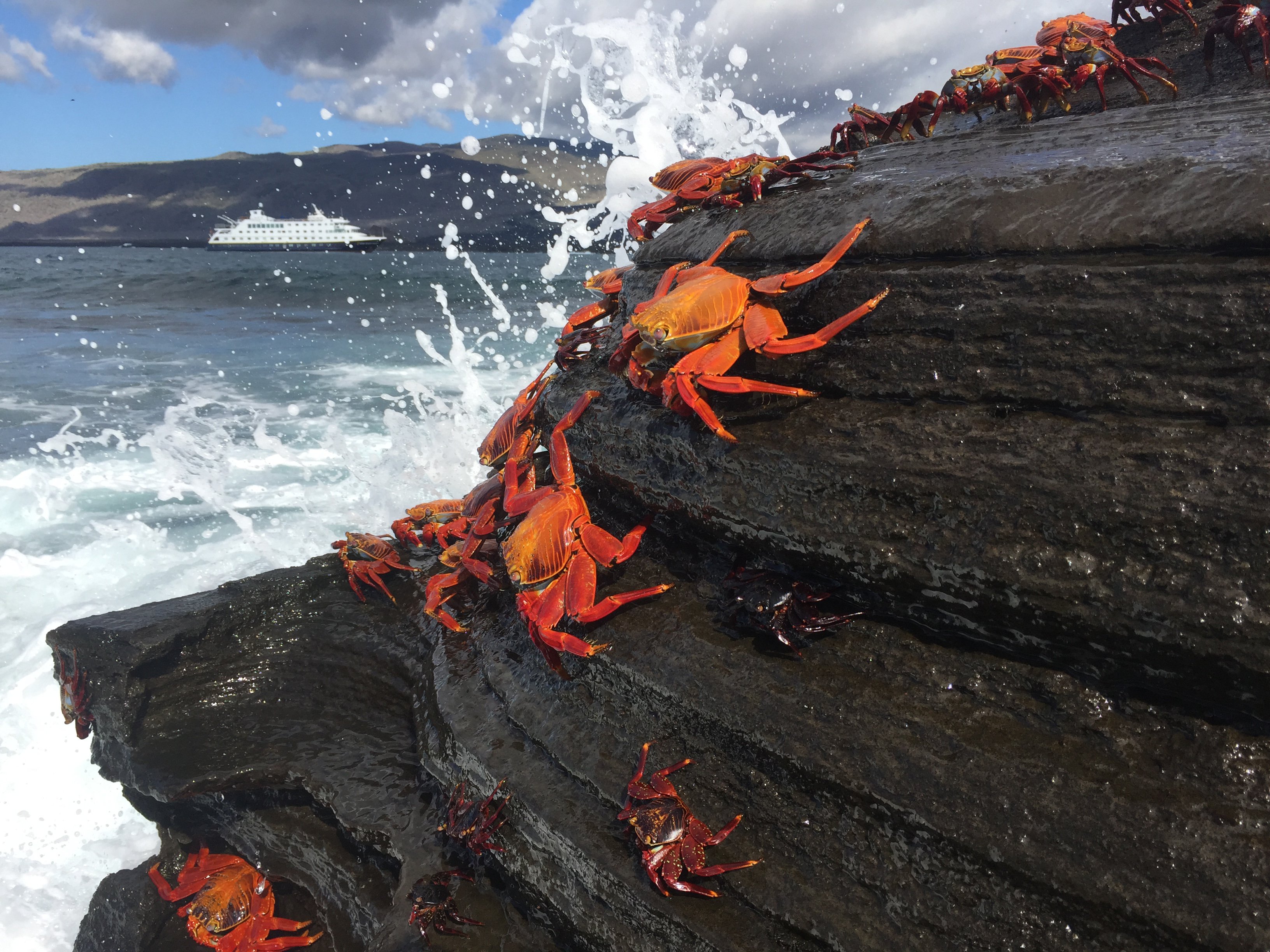 On our second day in Panama, we find the National Geographic Sea Lion, heading towards the Gulf of Panama. This is the last marine area we will explore before entering one of the highlights of the trip: the Panama Canal, both places very interesting in their own right. The Gulf is an area thriving with life, as it goes through a seasonal coastal upwelling due to the Northeasterly trade winds, which run from late November through April. As the North wind comes in, it pushes off the warm waters of the surface, causing it to move away from the shoreline; as a result, the cold water from below rises to replace the removed water. These colder waters from the bottom are characterized by high concentrations of nutrients, resulting in high productivity and rich marine life. This morning, we got the chance to see the result of this seasonal phenomenon in a group of small islets, Bona and Otoque, just a few miles off of the entrance of the Canal. We approached Bona Island to take a quick look at the bird activity surrounding it. Magnificent frigatebirds, brown boobies, brown pelicans and a few scattered blue footed boobies greeted us, some in their breeding display and others just fishing for their daily meal, the large number of birds gave us an idea of how rich the waters in the Gulf are.