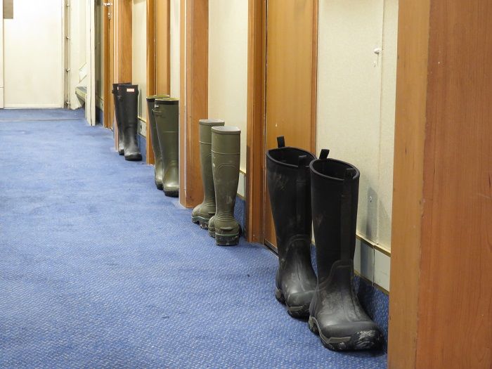 We woke to pretty clouds above the tree-covered hills as we sailed into Idaho Inlet, seeking wildlife. After breakfast, we landed at Fox Creek and hiked into a small waterfall along a salmon stream, through stately spruce and hemlock trees. The temperature was cool in the forest and black-capped chickadees sang to us as we walked along. Kayakers paddled in a beautiful cove with mirror-like waters, and other guests headed out on a cruise along the shoreline to search for wildlife and birds. It was a stunning morning. We sailed to the Inian Islands anchorage during lunch, and soon we were launching our expedition landing crafts to explore. The waters of the Inian Islands and Cross Sound are rich with nutrients due to the mix of upwelling currents and flooding tides, providing a wonderful food source for marine wildlife and seabirds. On this wonderful day, we saw Steller sea lions, sea otters, many humpback whales, and a minke whale. Late in the afternoon, we sailed over near Elfin Cove and went ashore to explore this picturesque and quaint fishing village on foot, making friends with the local dogs and talking with fisherman as we walked along the boardwalks of town.
