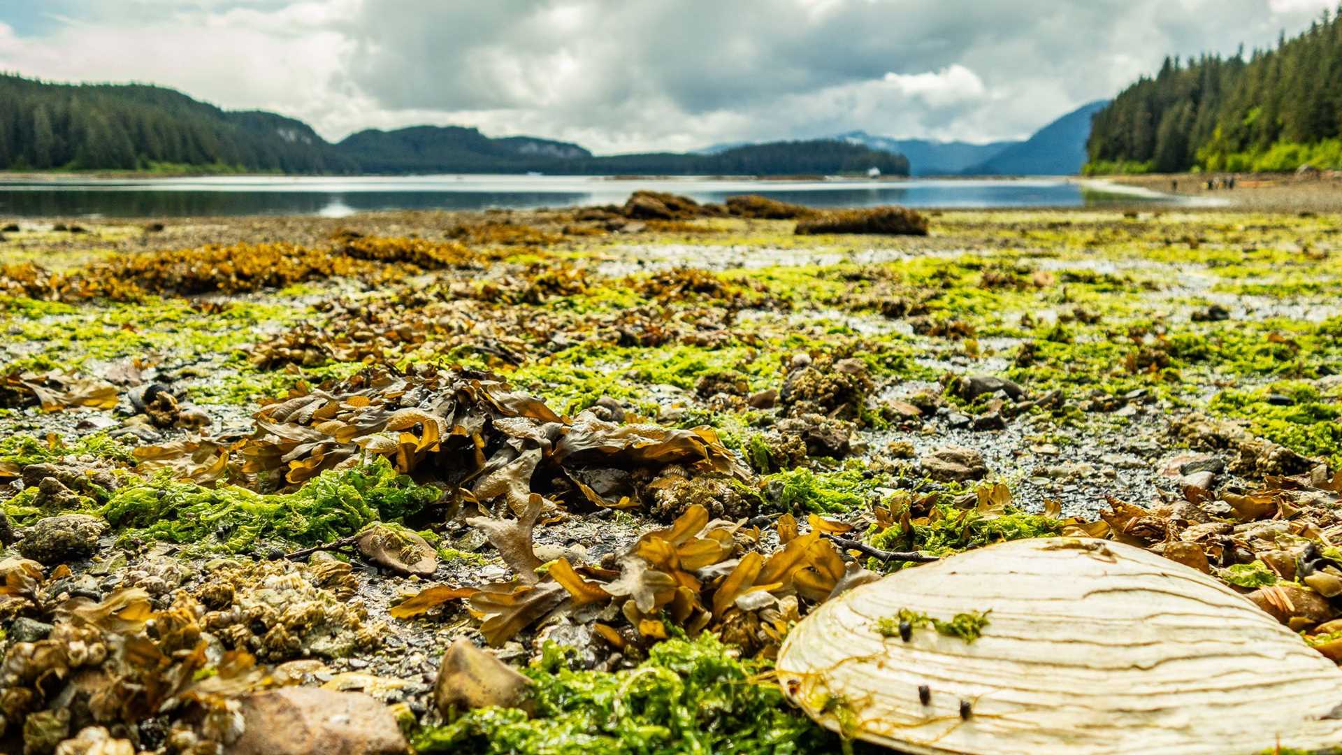 The shoreline in Saginaw Bay is characterized by a variety of bushes and trees protecting the entrance to temperate rainforest, densely perched against a gradually sloping rocky beach. Though we understood we were arriving at low tide, we were still shocked to see the incredible expanse of the exposed shoreline and upper tidal zone. By 8:45 am, our exploration operations had begun. As we stepped off the Zodiacs, our teams were stunned by the life surrounding our feet. Varieties of colors were abounding, deep blues and greens contrasted magentas and orange. Painted anemones dotted between the bivalves, retracted into their bodies in an absence of water during low tide. The anemones appeared as cylindrical mounds of exploding reds and pinks, patiently waiting for the crest of a high tide wave to return home. When our eyes focused to the land around us, we had thousands, if not millions, of live pacific blue mussels and butter clam shells blanketing the grey, thick silt beach.
