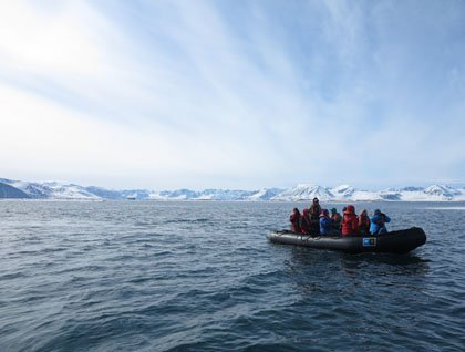 This morning the mother ship dropped the hook off Hamburgbukta along the northwest coast of Spitsbergen Island. A very small bay, barely visible from the sea, was entered via a narrow entrance to a natural harbor surrounded by a dramatic glaciated landscape.