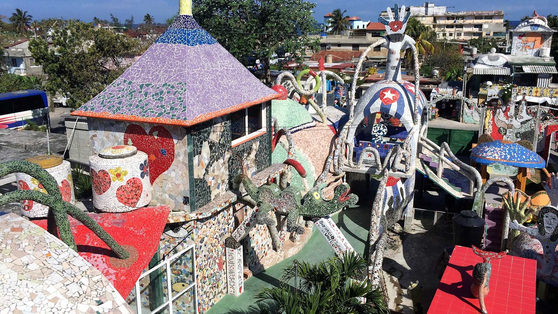 Part of our group left Havana behind this morning for a scenic drive towards the small fishing village of Jaimanitas. This village has been the home of Cuban artist Jose Fuster for more than 30 years. Since returning from Europe with a head filled with inspiration from Gaudi, Picasso and others, he has transformed his little neighborhood into an abstract, mosaic fantasy land, aptly named Fusterlandia. Over this period, he has adorned roofs, walls, doorways and benches, stretching for blocks around the epicentre of his studio, with his brightly-colored sculptures and mosaics: mermaids, fish, palm trees, roosters, Santería saints and figures from the Revolution. More than 80 neighbors have allowed Fuster to use their homes as his canvas, and it is truly an impressive sight.