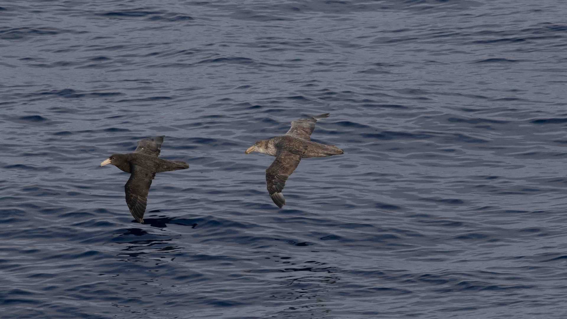 Through the night the seas calmed, and the wind let up. Yesterday the Drake Passage was angry, but today it had decided to show us a nicer side. The surface wind had dropped, but there was still swell. Around the ship, a few birds followed in our wake hoping we would stir up some morsel of food. Giant petrels and wandering albatross accompanied us on our route, set to intersect the southern part of the Antarctic Peninsula.