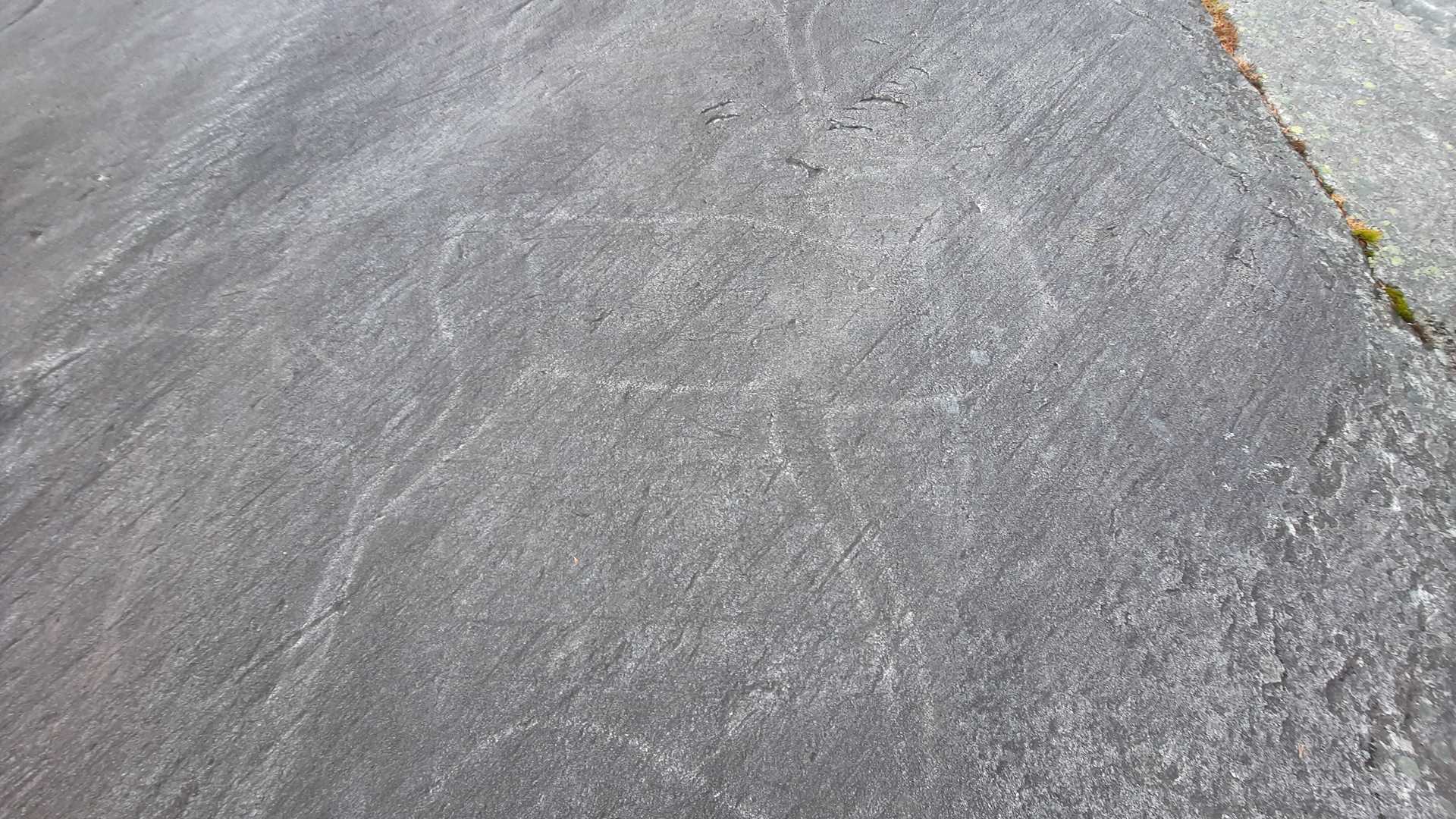 Photo caption: A 9000-year-old petroglyph in Tysfjord that shows a deer. Photo by Jonathan Zaccaria