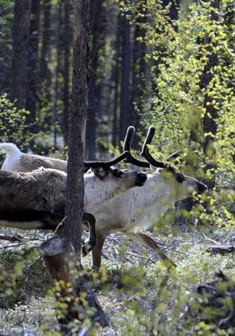 Here we found the forests of the national park leading up the valley. On the shore there was a small Sami community, which made its living from logging in the surrounding woodland. We went ashore and hiked alongside the river in the sun, towards the base of a waterfall that cascaded down the mountainside at a shallow angle. One group of hikers encountered a group of three reindeer following the river. The trees and heathland were resonating with the songs of birds. Many of us took to the water in kayaks to explore the cliff sides with more independence, with shorebirds such as oystercatchers and the occasional whimbrel flying between the boats.