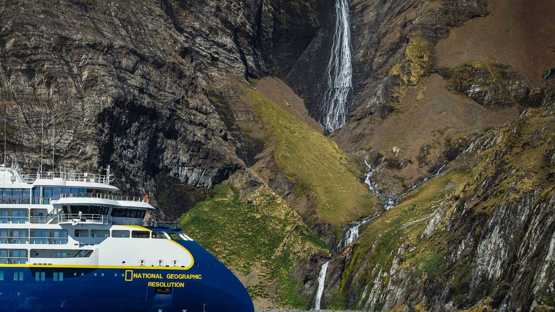 This morning the National Geographic Resolution visited one of the hidden gems along South Georgia’s rugged coast. Adorned with cascades and a waterfall, Hercules Bay is a great place to explore by Zodiac and is home to macaroni penguins and other birds nesting on the cliffs. There’s always a surprise when you explorer at water level.