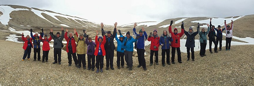 First on the agenda this morning was an “Introduction to Photography” presentation by our photo instructor Rich Kirchner followed by brief breakout sessions with the photo team. Brief because we approached Cape Fanshawe and the overwhelming biomass of approximately 70,000 breeding pair of Brünnich’s guillemot nesting on steep cliffs. This was our first real photography test of trying to capture these “flying footballs” soaring past the ship and landing on the water. Members of the Alcid family of birds, the Brünnich’s guillemot is more hydrodynamic than aerodynamic. Next up was our Global Perspective guest speaker, Michael Wysession who presented “Civilization Exists by Geologic Consent.” His poignant talk covered mankind’s history and the correlations of climate change with historic volcanic eruptions.