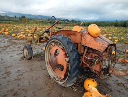 We are delighted to see the rain stop as we board our motor coaches for the drive to Rasmussen’s Farm. We cross the Hood River and head up along the orchard and vineyard-lined road. It is easy to see why this road is part of the so-called “fruit loop.” This area is famous for its pears, apples, and wineries. At the farm the air is rain-washed and clean, squashes of different varieties and colors fill large bins, and candied apples and popcorn are for sale along with jams and fruit butters. Bright orange pumpkins still lie thick in the field with the antique Allis-Chalmers tractor.