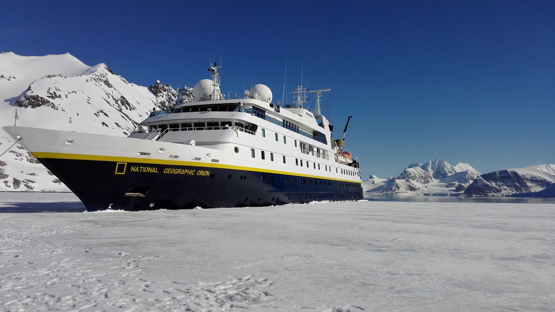 We set out westward to Burgerbukta where Captain Martin Graser found yet more fast ice to park the National Geographic Orion while he and a few others decided to take a dip into the icy asunder! Ten other brave souls joined the Captain in a polar plunge while the dive team took an extended version of the plunge exploring the benthos for an ever so slightly longer period of time. Just before plunging, we stepped out onto the ice for a walk around in the snowy wilderness for a photo opportunity and admiring some fresh polar bear tracks.