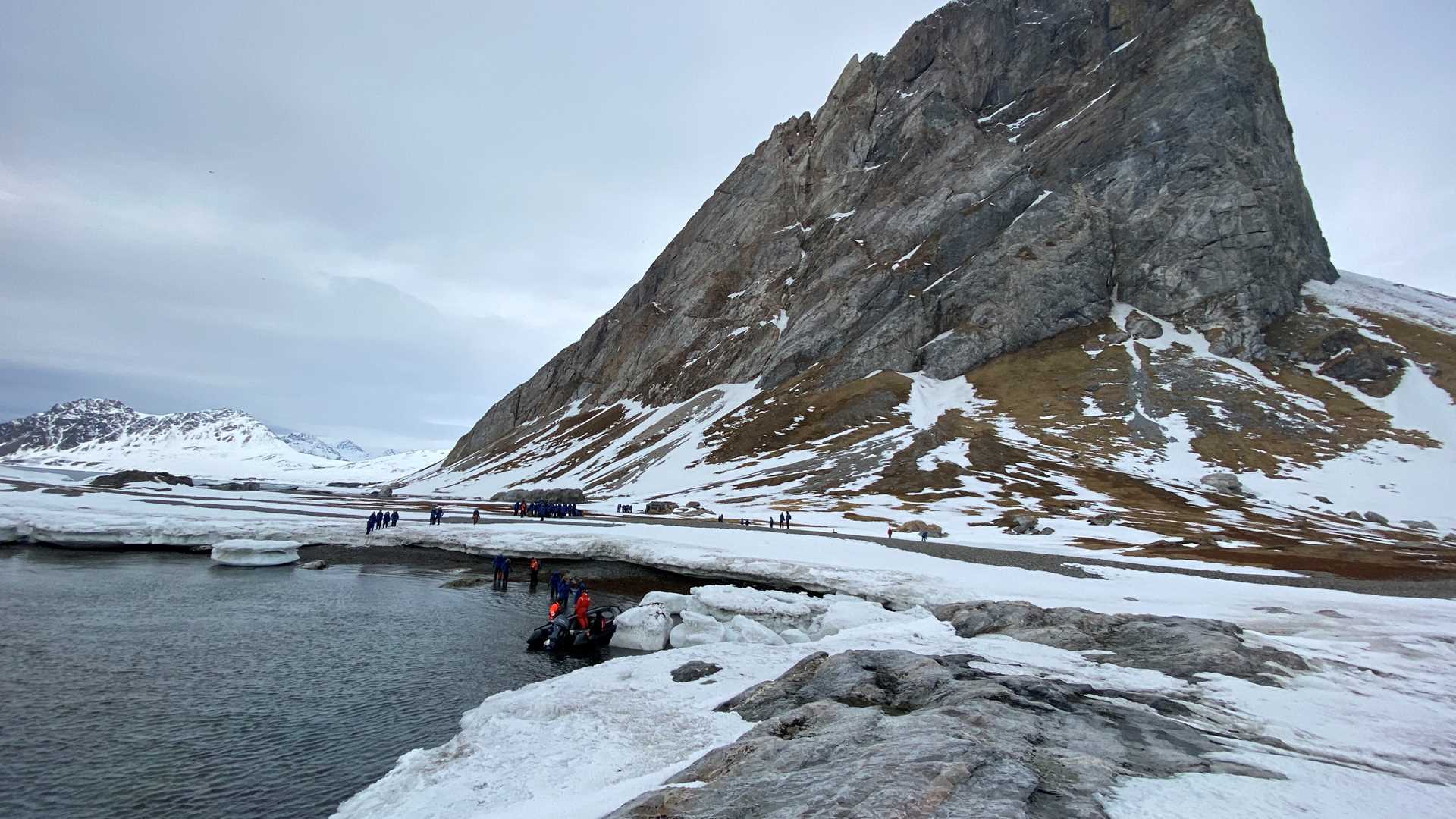As we are on the ice, we can see National Geographic Resolution just a short distance away. We spot the majestic peak of Hornsundtind, the highest mountain in Southern Spitsbergen, right above us! Simply a glorious time!