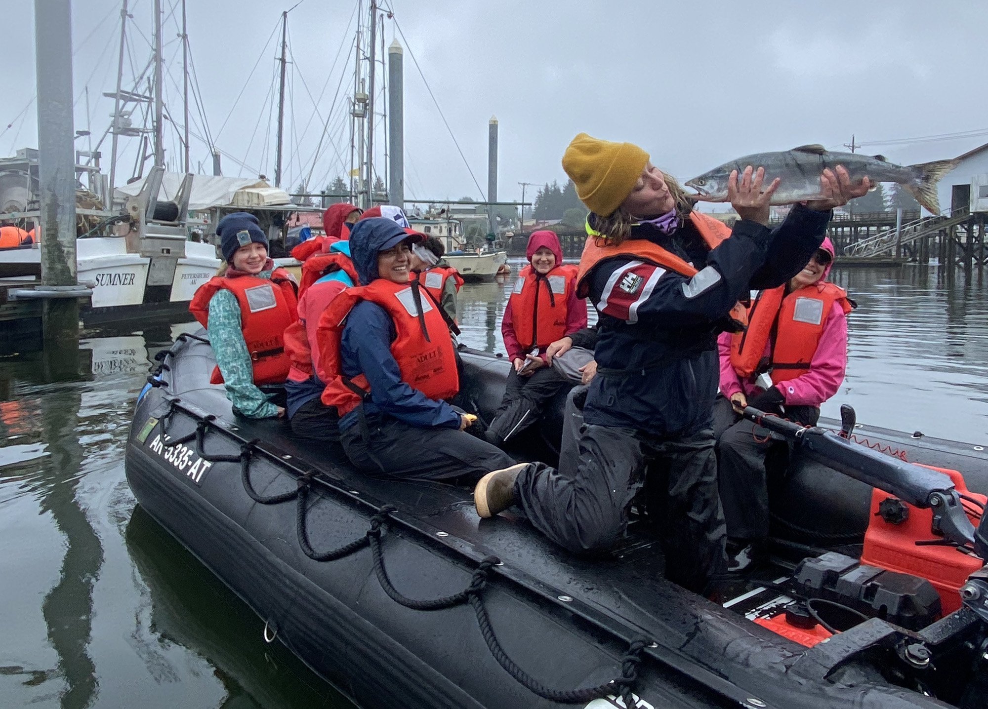 We woke to hints of blue behind a curtain of leaden gray that would part to reveal a rare, bluebird day in Southeast Alaska. As we steamed towards our destination, a pod of Dall’s porpoises gamboled in the distance. On Grindall Island, we enjoyed a mini-morning repast of raw and grilled oysters at Alaska’s newest, and perhaps only oyster far – Hump Island Oyster Company. After being treated to oysters, kelp salsa, miso soup, and a variety of fine beverages, we steeled ourselves for an afternoon of bushwhacking and Zodiac cruises around Grindall Island. It was a fine day that will provide lasting memories for seasons to come.