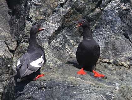 In the afternoon, we took our inflatables through the Inian Islands. Rich green water swirled around us, driven by impressive tidal currents. These currents sweep fish of many sorts past the Inians, and fishing creatures of several sorts gather here to enjoy the regular feast. We saw trees dripping with eagles, and the dogged flapping of cormorants, and dapper guillemots skittering over the waves. We also saw sea lions. These huge beasts lie in untidy piles over the rocks. Though they love company, they cannot ever seem to enjoy it without constant bickering. We heard the throaty roaring of their petty fights. Though ungainly at rest, sea lions are supremely agile in the water. The ‘lions regularly approached us, and while thrilled at their proximity, we could hardly help but be amazed at the deft and speedy motion of their bulky bodies. We also saw sea otters diving for fruits-de-mer, or preening with engaging industriousness. One was eating a basket star, munching happily on Dreamsicle-colored gorgon curls.