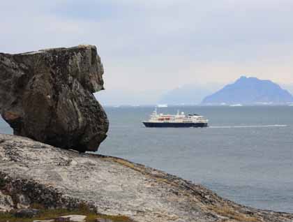 But perhaps sea lions were the stars. Draped in untidy piles, they would seem to have found a life of blissful relaxation, but for their constant and noisy bickering. Juveniles romped on the rocks, and huge males, in splendid isolation, regarded us with calm distain. (Later, Colin, our undersea specialist, showed us what sea lions really look like. Beneath the waves, sea lions are lithe and graceful, delicate as ballerinas, and frisky as puppies.) Sometimes the ‘lions approached our boats, seeming all whiskers and eyes. Others leapt in our wake, as if ready for a circus try-out.