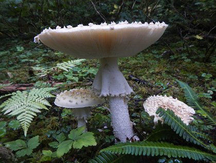 Things are changing quickly at this time of year in Alaska, flowers fading, colors turning, with different mushrooms emerging in the forest. There can be a large variety of shapes, sizes, and colors of these fungi along any trail, and we were not disappointed this morning! I think that there were a large number of photos taken of these wonderful organisms on this particular morning!