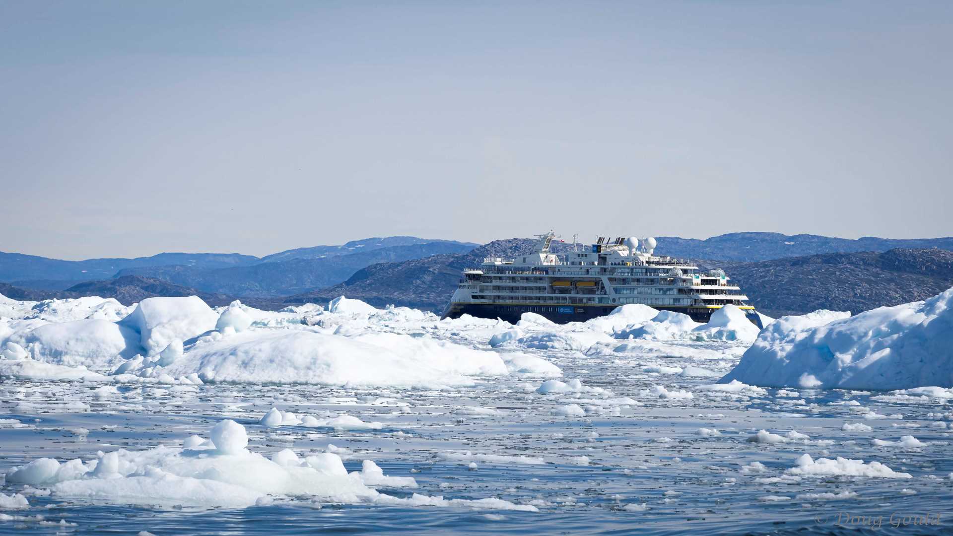 Today was our last day in Greenland, and we spent it visiting the UNESCO World Heritage Site of Jakobshavn Glacier and the Ilulissat Icefjord. Jakosbshavn Glacier is one of the most active glaciers on earth. Fed by the Greenland ice cap, it produces about 10% of Greenland’s icebergs. Massive bergs are released from the glacier and make their way down the fjord until they reach the relatively shallow water at the entrance to Davis Strait. There, the larger icebergs run aground on the submerged terminal moraine. Unable to pass over the moraine, they are stuck there, sometimes for years, until they break up into smaller pieces. The larger icebergs create a roadblock at the entrance of the fjord, keeping tons of ice from escaping.