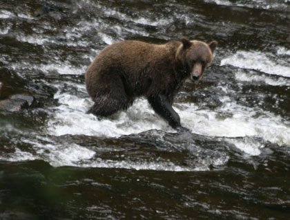 During the winter most of the Arctic Basin is covered by ice. It is a frozen ocean, except for the areas that we call polynyas, where winds and currents prevent the development of ice. Polar bears roam over the Arctic ice, seeking seals. Winter and, especially, spring when the seal pups are born, is the time of plenty for polar bears. During the Arctic summer, the sea ice breaks up and moves with the winds and currents. Its extent diminishes as the ice melts. Polar bears are concentrated onto ever-smaller areas of ice to search for their meals. To find the bears, you must find the ice. Today we found the ice in Lancaster Sound, and we found the bears. Our ship entered into the ice, slicing through the rotting remains of last winter's frozen sea. As we turned over pieces of ice, kittiwakes and glaucous gulls followed closely, snatching the polar cod that were revealed as we broke the ice. The occasional ivory gull flew over, uttering its distinctive call. That is always a good sign, because ivory gulls feed on the remains of seals killed by bears. We found a bear with the carcass of his kill. He seemed annoyed by the many birds that gathered around him, making bluff charges to keep them at a distance. It didn't really work.