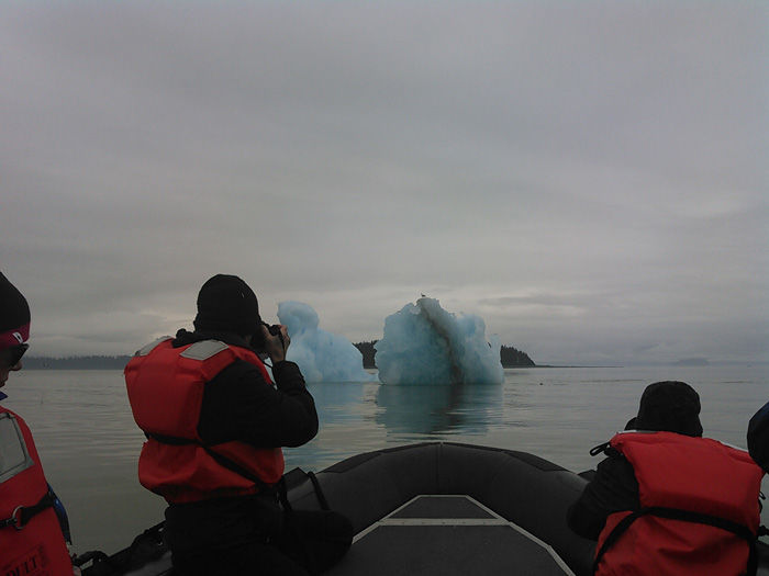 Further along, we watched the spouts and flukes of humpbacks along the shore and used binoculars to count more than two dozen bald eagles perched in the Sitka spruce lining the rocky coves. In the afternoon, we landed at nearby George Island to kayak, tidepool, and hike through the Tongass National Forest. Hikes ended with picture-postcard views from a WWII installation of a cannon pointing toward Cape Spencer, with expansive vistas afforded in every direction, including Brady Glacier.