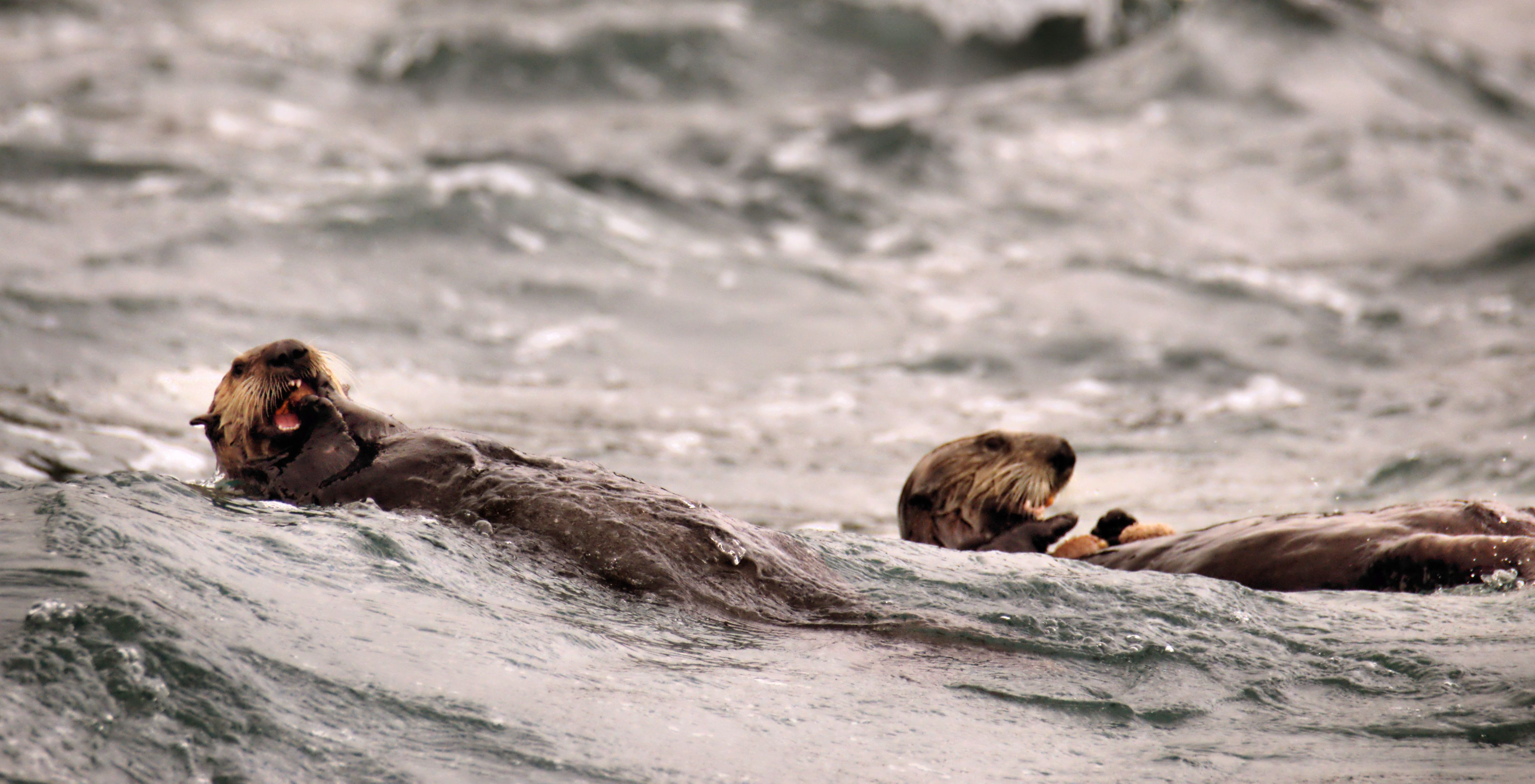 The day started out with fog rolling off the mountains but hope lay in a high-pressure front that was forming over the Gulf of Alaska, near the mouth of Cross Sound where the National Geographic Sea Lion was anchored. There was still potential for a day of clear skies and adventure. Morning found us exploring the dynamic environment surrounding the Inian Islands. We discovered sea otters, sea lions, and many species of sea birds, and we were treated to the site of a humpback whale lunge feeding at the surface of the roiling waters. Afternoon found us at Fox Creek, where we traversed a salmon stream and paddled the late summer shoreline.