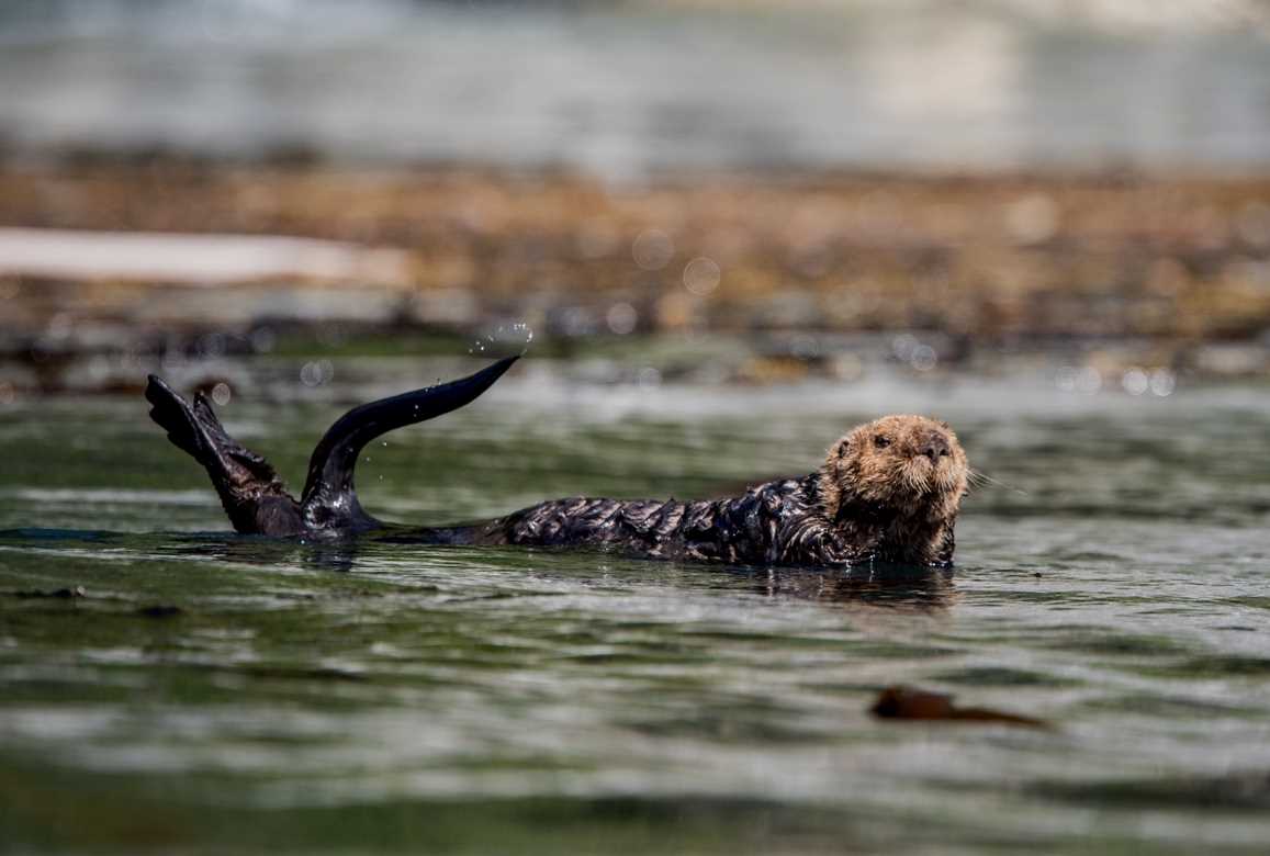 This morning National Geographic Sea Lion made her way to the most marine of environments for our week long expedition to Southeast Alaska. The Inian Islands are the last small islands that make up the border between Icy Strait and Cross Sound. Just west of Cross Sound is the open Pacific Ocean. The changing tides push massive amounts of water into the sound. As the water churns around the islands, eddies and maelstroms are formed. These water disturbances can confuse fish as they make their way into Southeast Alaska from the open Pacific Ocean. Many animals take advantage of this and hunt for food in the Inian Island area. These include humpback whales and Stellar sea lions. Sea otters also hunt in the area. The largest member of the weasel family, sea otter males can be over 90 lbs. and they ply these waters in search of food in many forms. We had the chance to go out in our fleet of expedition landing craft to witness the tidal change and see the animals taking advantage of it. Several sea otters were seen amongst the abundant kelp in small bays.