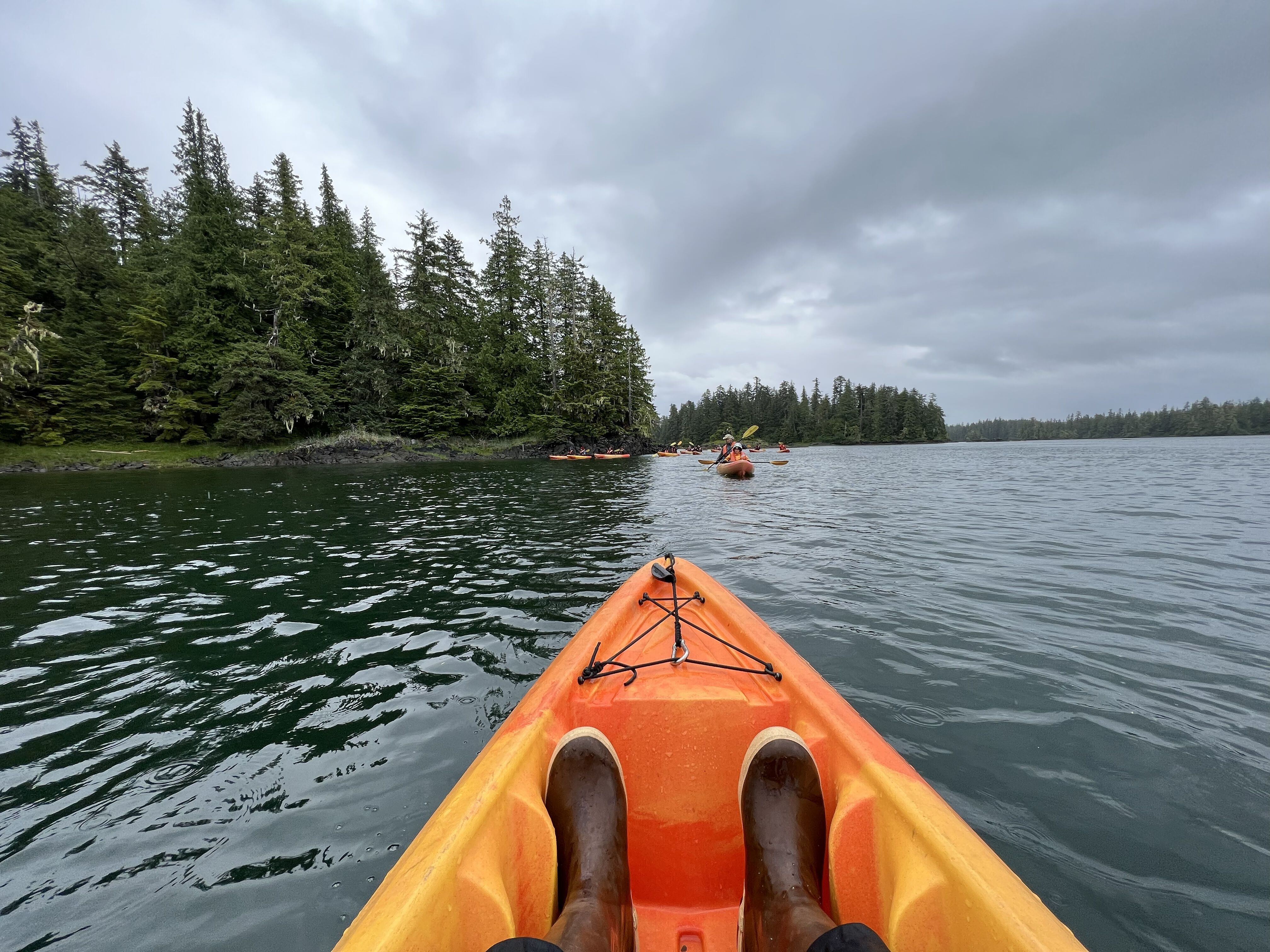 We headed out on our exploration under stereotypically soggy skies to observe this slice of the Tongass temperate rainforest. We encountered frolicking and frisky hordes of Steller sea lions, fuzzy rafts of sea otters tucked into the thick blankets of bull and winged kelp forests, and countless feathered friends, including pigeon guillemots, tufted puffins, pelagic cormorants, glaucous-winged gulls, and bald eagles fishing for a complimentary meal provided by some of the most productive waters in the world. In fact, this is the place where eagles get to go fly fishing. The currents are so strong that even a rockfish can be caught during the changing of the guard. Its normally neutral swim-bladder becomes a death sentence. Upon a rapid tidal punch to the surface, their over-inflation leaves them pop-eyed and too buoyant to swim back to more comforting depths. On this day, we came upon one such tragic bocaccio rockfish (Sebastes paucispinis), just moments before it became a meal for a bald eagle. It was a testament to the power of these waters that even a fish can get caught up in current events.