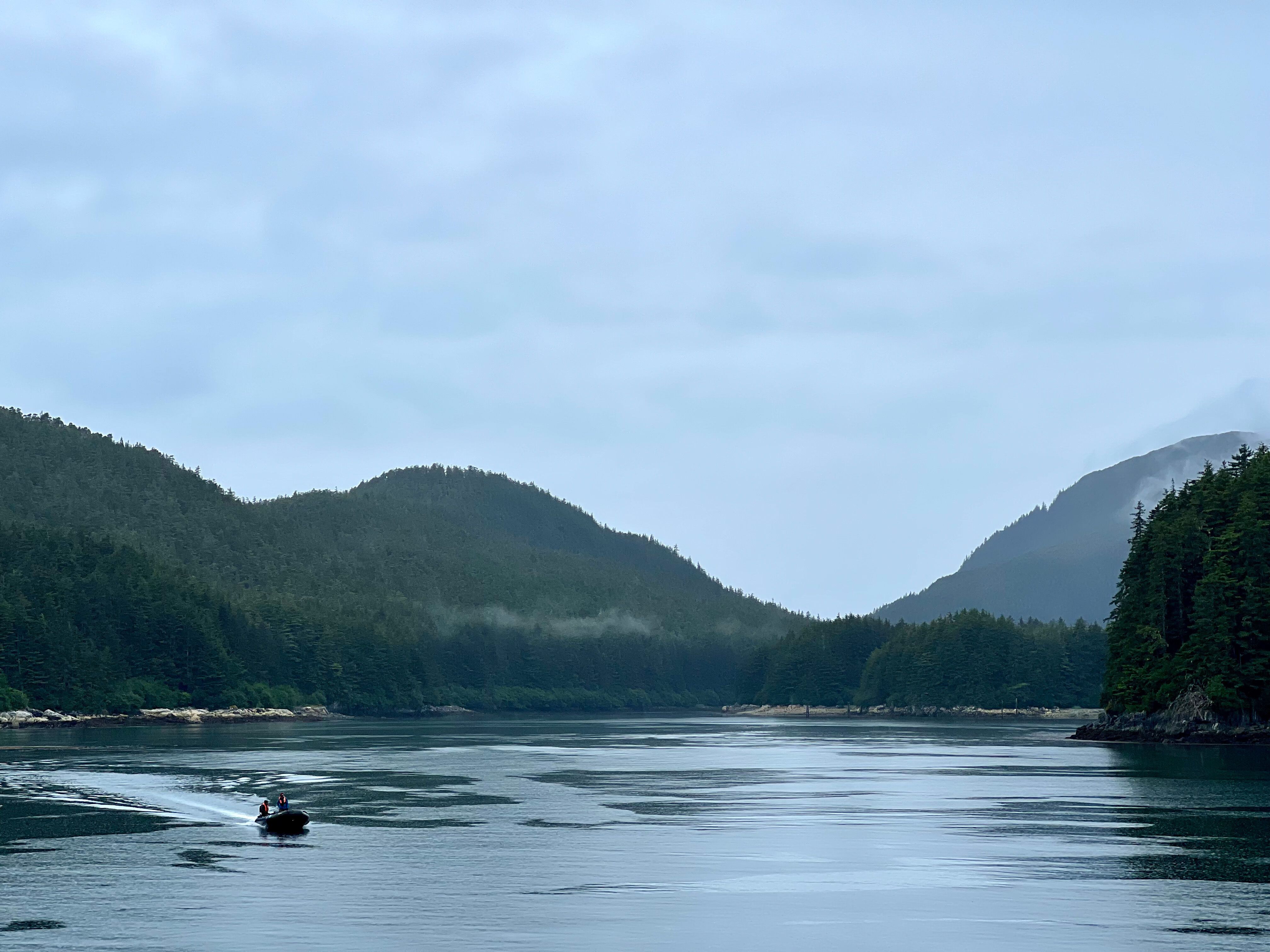 It all began bright and early at the Inian Islands—the last land stop for the flowing tide before it rushes out from the Inside Passage to the open Pacific. If Alaska could be considered the “West Coast, Supersized,” then the Inian Islands are “Alaska, But More So.” Here the tidal flow is so extreme that rivers of ocean form at every rising and falling tide, creating whirlpools, standing waves, and upwelled boils that make even the most experienced Zodiac drivers tense up at the helm. The waters are often translucent shades of jade and blue green, a testament to the richness of the deep water brought surging to the surface.