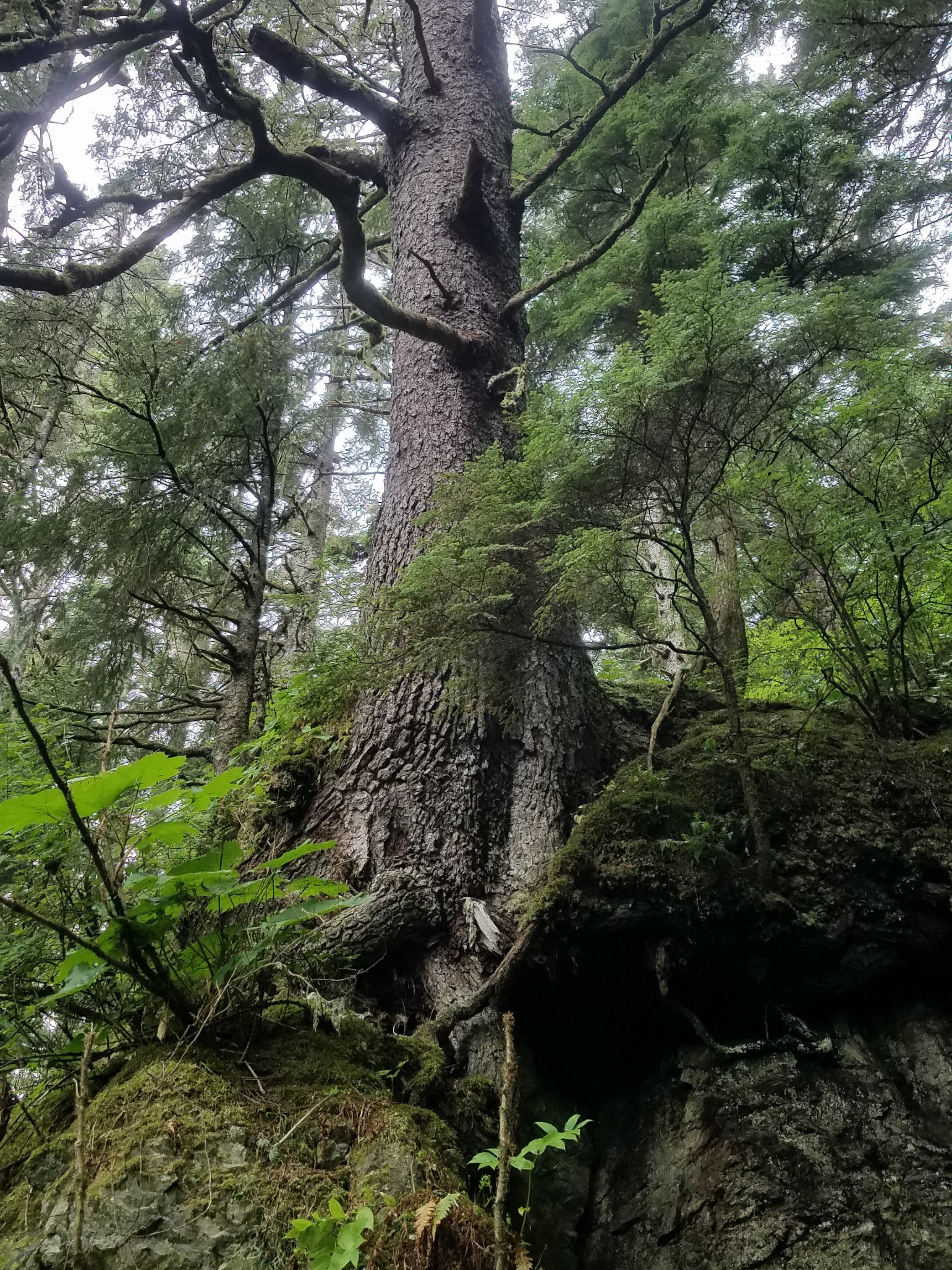 Afterward, we returned to the ship for a class on smartphone photography and a delicious lunch. Mary Jo from Elfin Cove came on the ship to talk about the remote town, and afterward, we headed ashore to George Island for a forest hike. We explored both nature and the human WWII history of the place. Then we headed into the village to visit the museum and general store.