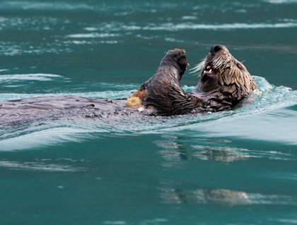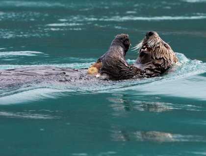 After breakfast, we explored the Inian islands, a group of islands at the very end of the Inside Passage. Here, the water was flooding in at incredible volumes, with whirlpools and tide rips covering the surface of the water.  The zodiac ride became a bit of an adventure ride, thrilling all of us.  The incoming water was bringing in huge volumes of fish and food, and many different things were feasting. Bald eagles, gulls, and murrelets were attacking from above, while otters, sea lions, and porpoise joined in from below.